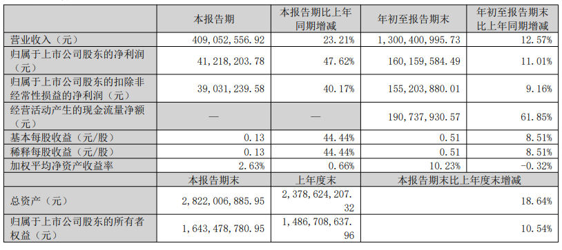 归属于上市公司股东的净利润1.6亿元,同比增长11.01%。归属于上市公司股东的扣除非经常性损益的净利润1.55亿元,同比增长9.16%。