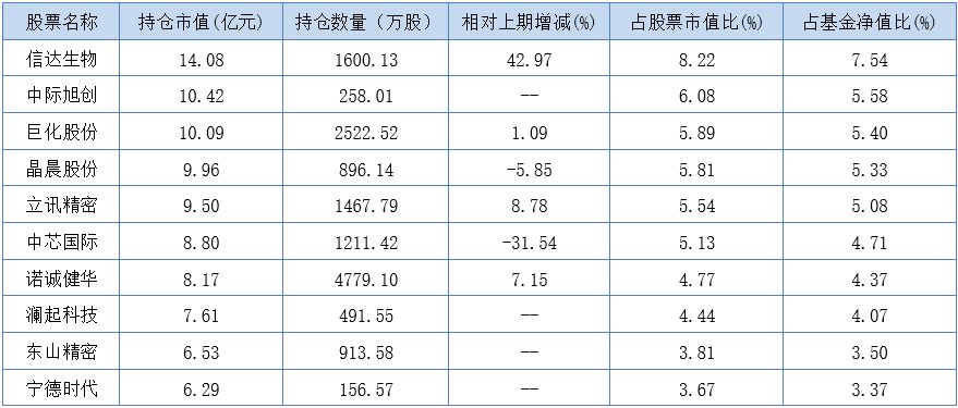 中际旭创、澜起科技、东山精密、宁德时代等个股新进前十大重仓股,二季度重仓的小米集团-W、金蝶国际、蓝思科技、阿里巴巴-W则掉出前十大重仓股行列。