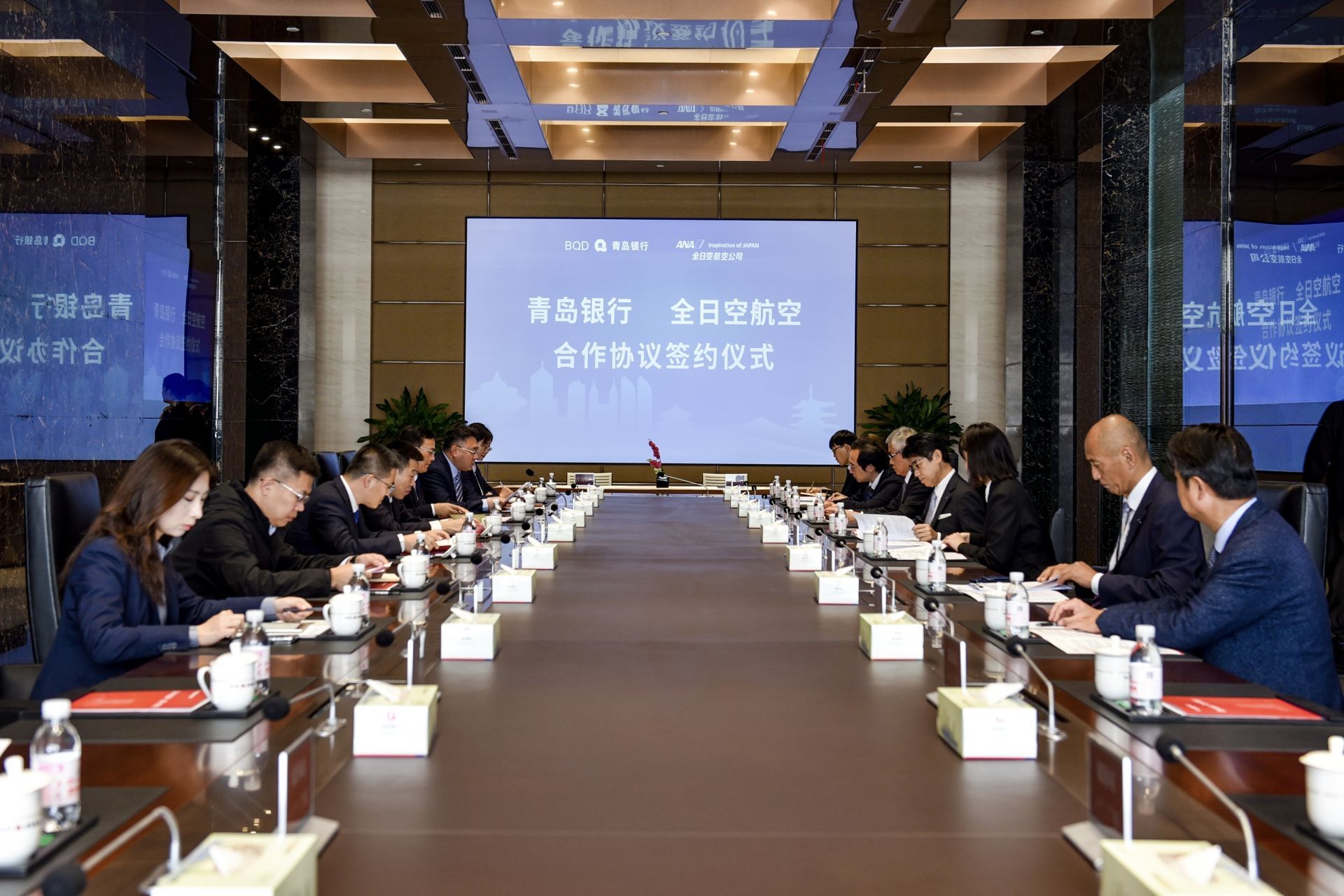 10月28日,青岛银行与全日空航空签署合作协议,双方在青岛银行总行举行了隆重的签约仪式。日本驻青岛总领馆总领事斋藤宪二、副总领事小山久子、青岛市文化和旅游局局长赵发海、全日空航空高级执行董事、中国区总裁中原伸二、青岛办事处总经理常木尚隆、青岛银行董事长景在伦、副行长张迟红及双方相关人员共同出席仪式。