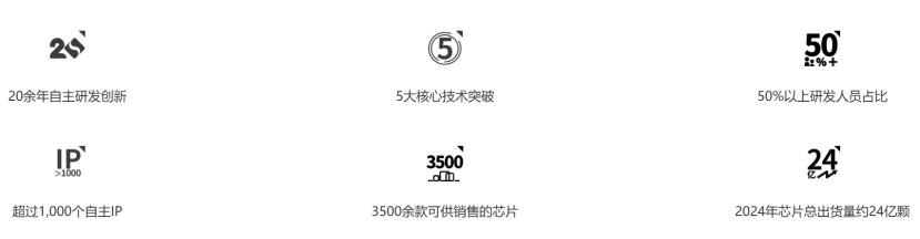 经过20余年自主创新,已拥有五项核心技术包括高可靠性MCU技术、高性能触摸技术、高精度模拟技术、电机驱动芯片技术及底层算法、低功耗技术等。同时,积累的自主IP超过1,000个,可供销售的芯片超过3500余款,2024年芯片总出货量约24亿颗。