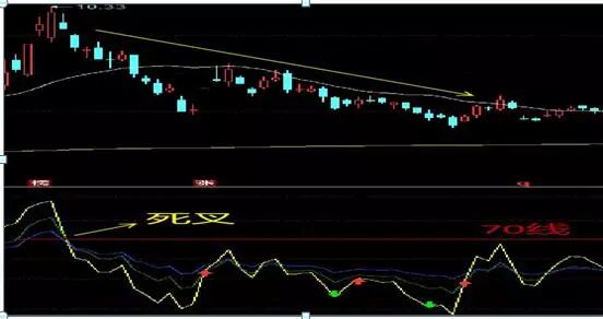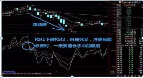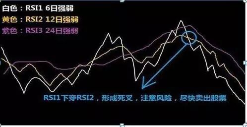 如果当RSI指标的黄线与绿线一起向下运行,同时黄线自上而下的击穿绿线,形成高位死叉。