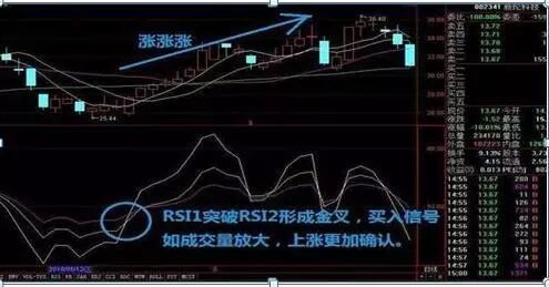 在实际操作时,还应该结合成交量的变化来决定买卖。若RSI指标形成低位金叉时成交量同步放大,这个买入信号可能就更为准确。
