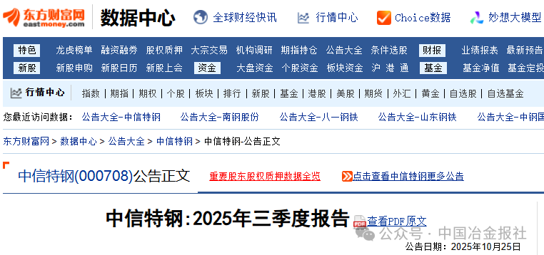 10月25日,山东钢铁发布《山东钢铁股份有限公司2025年第三季度报告》。