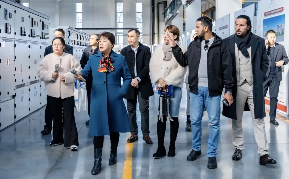 在九洲集团总裁赵晓红及管理层的全程陪同下,代表团走进核心生产车间,实地参观智能配电网设备的生产流程、制造工艺及品控体系。赵晓红总裁结合生产现场,详细介绍了企业发展历程、核心技术优势及产品性能特点。依托多年技术沉淀与全球项目实践,集团核心装备与解决方案已在多个海外市场通过验证,核心技术与产品性能达到国际先进水平,让代表团直观感受到企业的综合实力与核心竞争力。