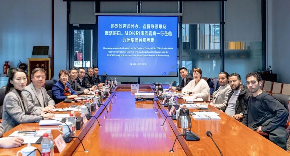 10月31日,哈尔滨九洲集团迎来摩洛哥EL MOKRI家族代表团一行,在黑龙江省侨联副主席孙亮璞、省对外友协办公室副主任蔡欣然及省外事办相关负责人陪同下,双方围绕智能配电网设备、风电、光伏、生物质能等领域的合作机遇展开深度对接,达成初步合作意向,为集团拓展国际市场、深化“一带一路”经贸对接搭建合作桥梁。