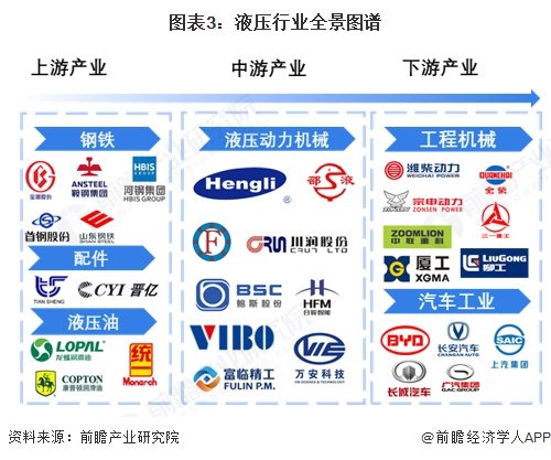 液压行业下游主要是工程机械、农业机械、机床工具、汽车工业等行业,其中工程机械行业额有潍柴动力额、中联重科、三一重工等;汽车工业包括比亚迪、长安汽车、上汽集团等。