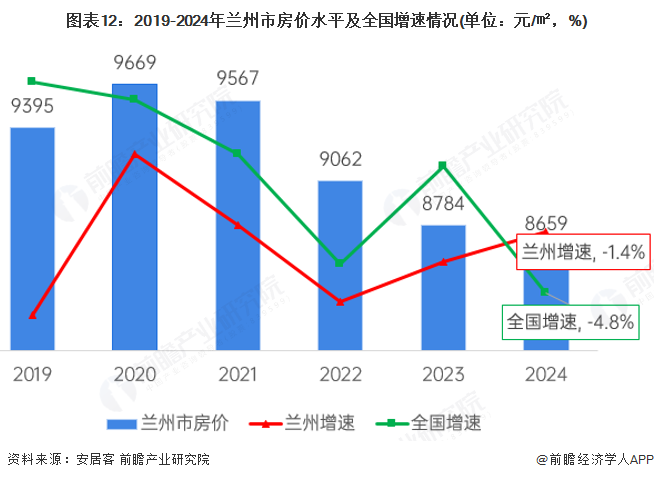 安居客数据显示,兰州市2019-2024年以来新房均价波动下降,2024年兰州市新房销售均价为8659元/㎡,同比下降1.4%,降幅低于全国。