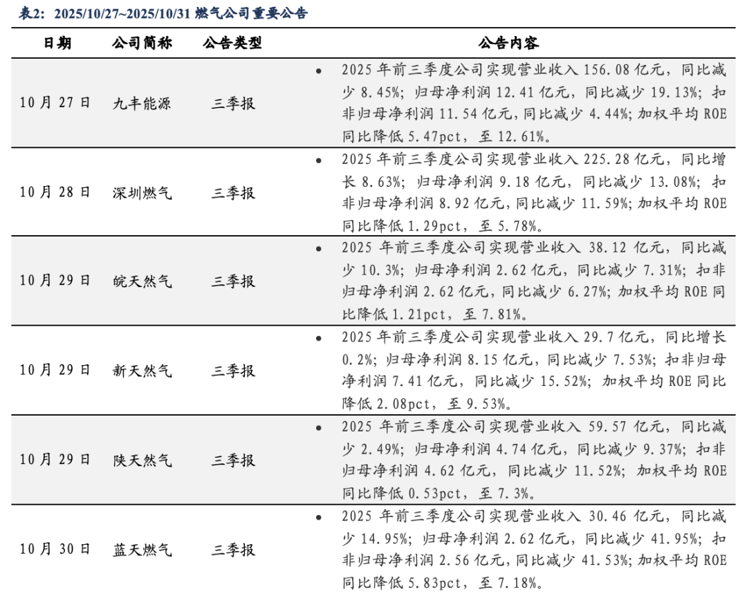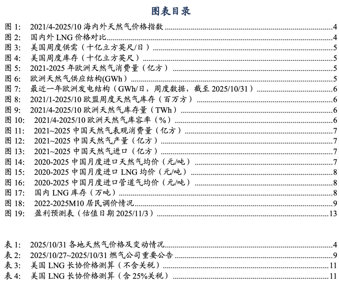 3)美气进口不确定性提升,能源自主可控重要性突显。建议关注具备气源生产能力的【新天然气】【蓝焰控股】。(估值日期2025/11/3)