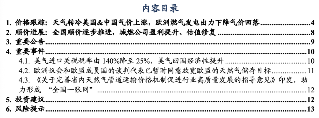 1. 价格跟踪:天气转冷美国&中国气价上涨,欧洲燃气发电出力下降气价回落