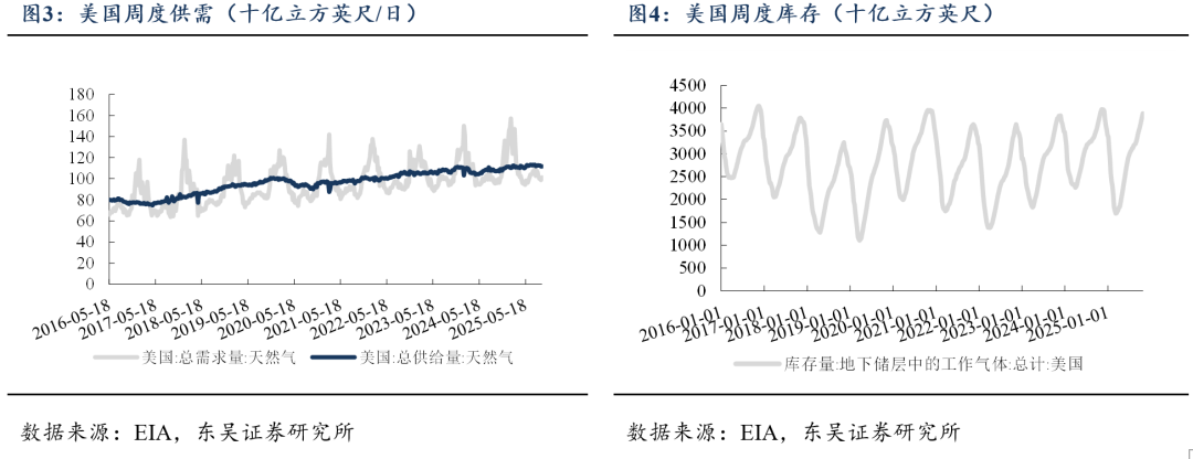 天气转冷,美国天然气市场价格周环比+11.6%。截至2025/10/24,储气量周环比+740亿立方英尺至38820亿立方英尺,同比+0.5%。