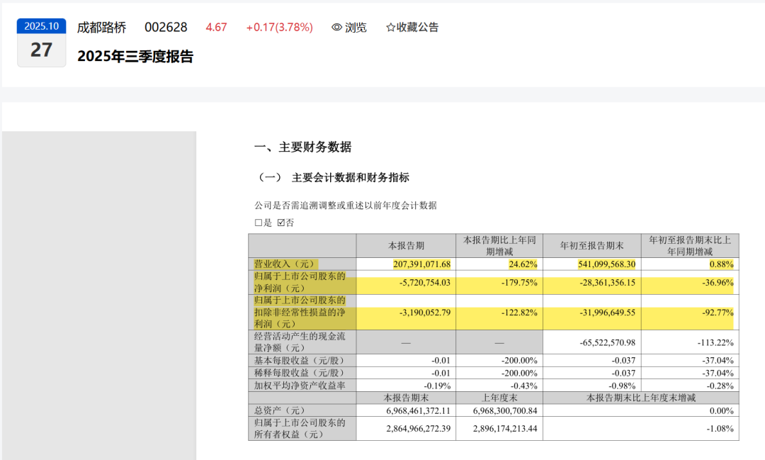 公司现状:她掌舵的成都路桥,今年前三季度亏了2800多万,经营压力不小。