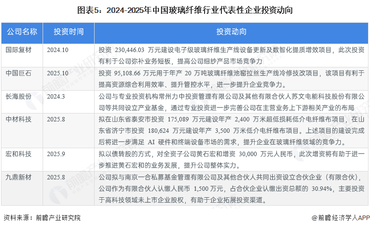 玻璃纤维行业代表性企业最新投资动向