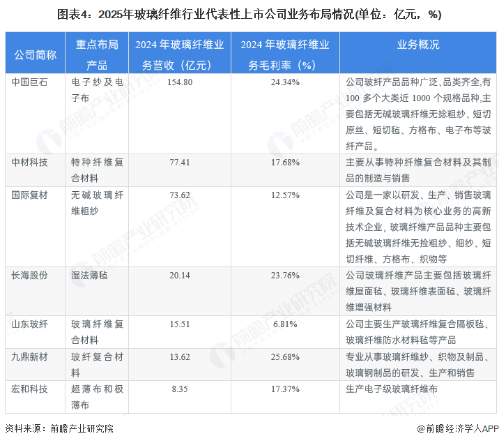 玻璃纤维行业代表性企业业务布局情况