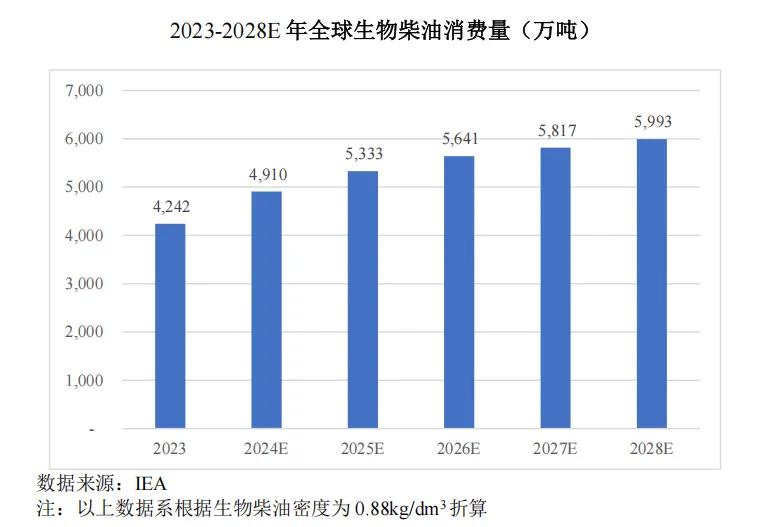 双碳战略则成为需求端的核心驱动力。在全球“碳中和”目标引领下,生物柴油作为化石柴油的环保替代方案,需求持续增长。2023年全球消费量达4242万吨,预计到2028年将增至5993万吨,年复合增长率约7.16%。