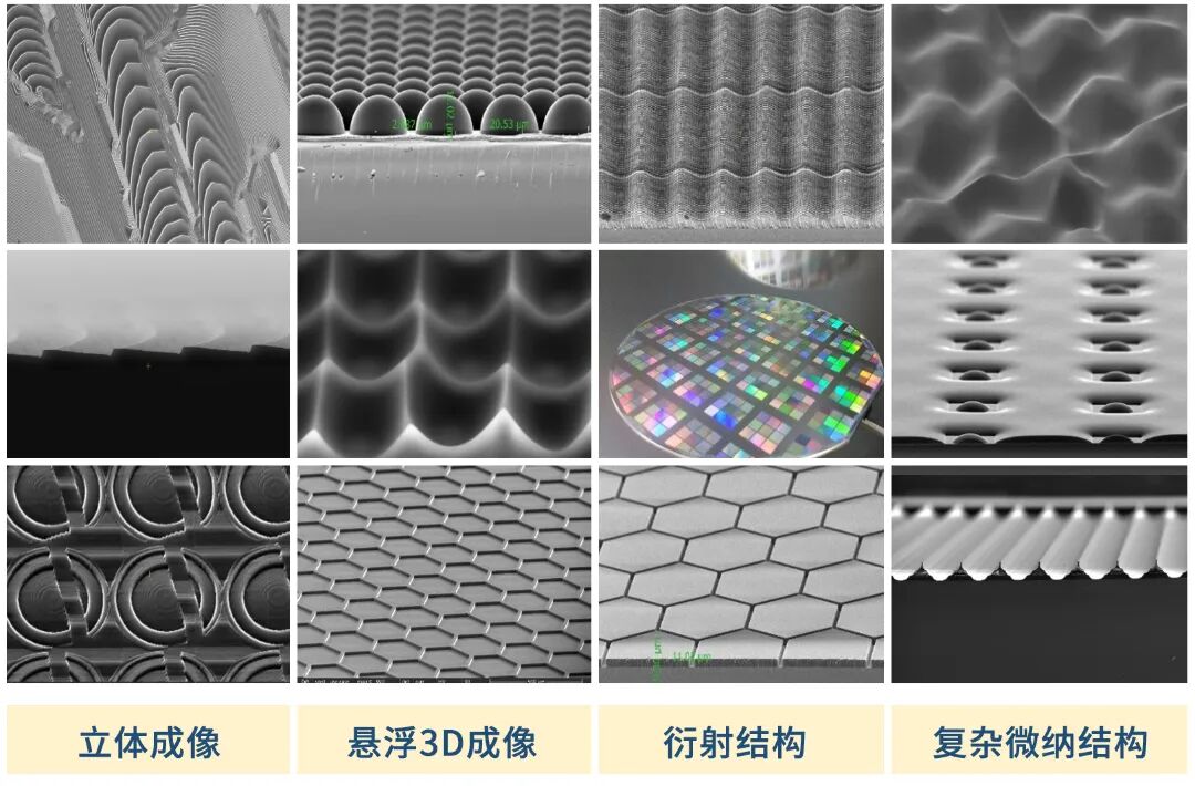 为匹配微纳结构立体成像的高精度需求,项目组自主研发面向微纳结构的三维光刻制版系统。该系统整合高分辨率光源、精密光学调控及专用光刻材料等核心组件,攻克了超大面积微纳形貌的高精度制版难题,实现了从设计方案到物理制版的高效转化。其独特的光束控制技术与成像系统,使制版精度达到亚微米级,为后续立体成像包装的批量生产提供了稳定可靠的核心装备保障,打破了传统制版技术在微纳尺度加工上的瓶颈。