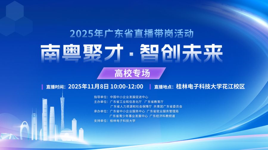 2025年广东省直播带岗活动将在2025年7月-12月开展40场线上招聘会。本次活动由中国中小企业发展促进中心指导,广东省工业和信息化厅、广东省教育厅、广东省人力资源和社会保障厅、共青团广东省委员会联合主办,广东省中小企业服务中心、广东省就业服务管理局、广东省青少年事业发展中心、广东经济科教频道共同承办。