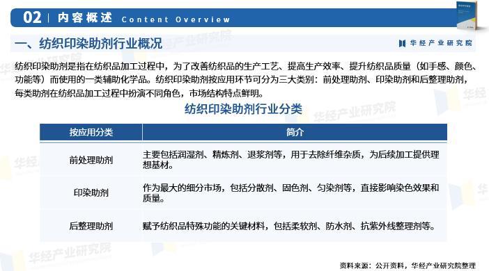 华经产业研究院研究团队使用桌面研究与定量调查、定性分析相结合的方式,全面客观的剖析纺织印染助剂行业发展的总体市场容量、产业链、经营特性、盈利能力和商业模式等。科学使用SCP模型、SWOT、PEST、回归分析、SPACE矩阵等研究模型与方法综合分析纺织印染助剂行业市场环境、产业政策、竞争格局、技术革新、市场风险、行业壁垒、机遇以及挑战等相关因素。根据纺织印染助剂行业的发展轨迹及实践经验,精心研究编制《2026-2032年中国纺织印染助剂行业市场调查研究及投资机会评估报告》,为企业、科研、投资机构等单位投资决策、战略规划、产业研究提供重要参考。