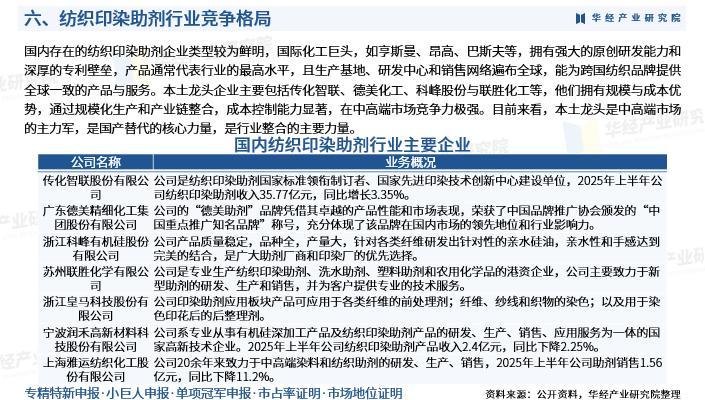 第九章 2021-2025年主要纺织印染助剂企业及竞争格局