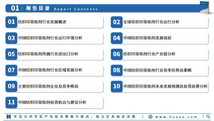 《2026-2032年中国纺织印染助剂行业市场调查研究及投资机会评估报告》对纺织印染助剂行业发展环境、市场运行现状进行了具体分析,还重点分析了行业竞争格局、重点企业的经营现状,结合纺织印染助剂行业的发展轨迹和实践经验,对未来几年行业的发展趋向进行了专业的预判。是企业、科研、投资机构等单位了解行业最新发展动态及竞争格局,把握行业未来发展方向、提高企业经营效率、做出正确经营决策不可或缺的重要工具。