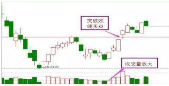 形态特征:大盘和个股长期下跌之后止跌企稳,在K线图上形成头肩底的K线形态,右肩成交量放大,然后突破颈线位置,这时候就是大胆建仓。