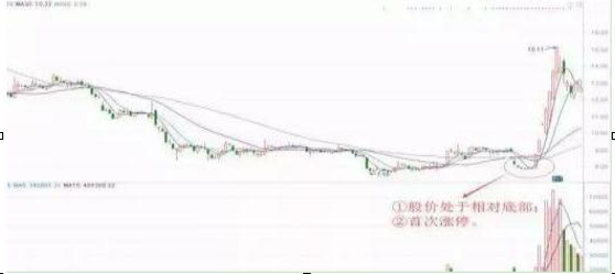 底部首板指的是股价处于该股历史股价的相对低位,首个交易日涨停即为底部首板。