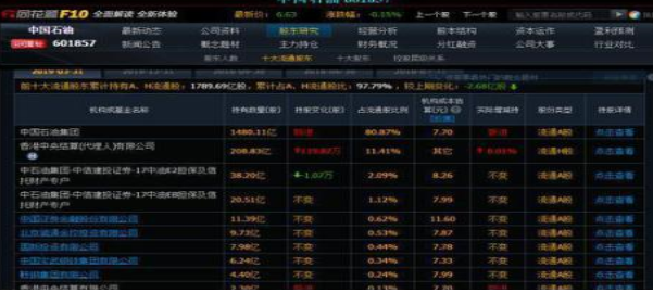 中石油上市以来的所有报告期中,除2008年一季报和2012年半年报外,其余季度的股东户数均是下降的。中石油上市当季发布的2007年年报中,股东户数为187.92万户;2008一季报中,增加至213.28万户;随后一路下降,至2012年一季报大幅降至107.13万户;2012年半年报微幅增加至107.42万户;随后又继续下降。最新的2016年三季报中,中石油的股东户数已降至58.44万户,较2008一季报的数据下降逾七成。同时,在最近的17个季度中,中石油的股东户数均是下降的。由于A股的机构投资者数量较少,而散户数量众多,因此,从一定程度上看,中石油的股东户数持续下降,可以解读为散户持续出逃,而主力则可能主动或被动在收集筹码。