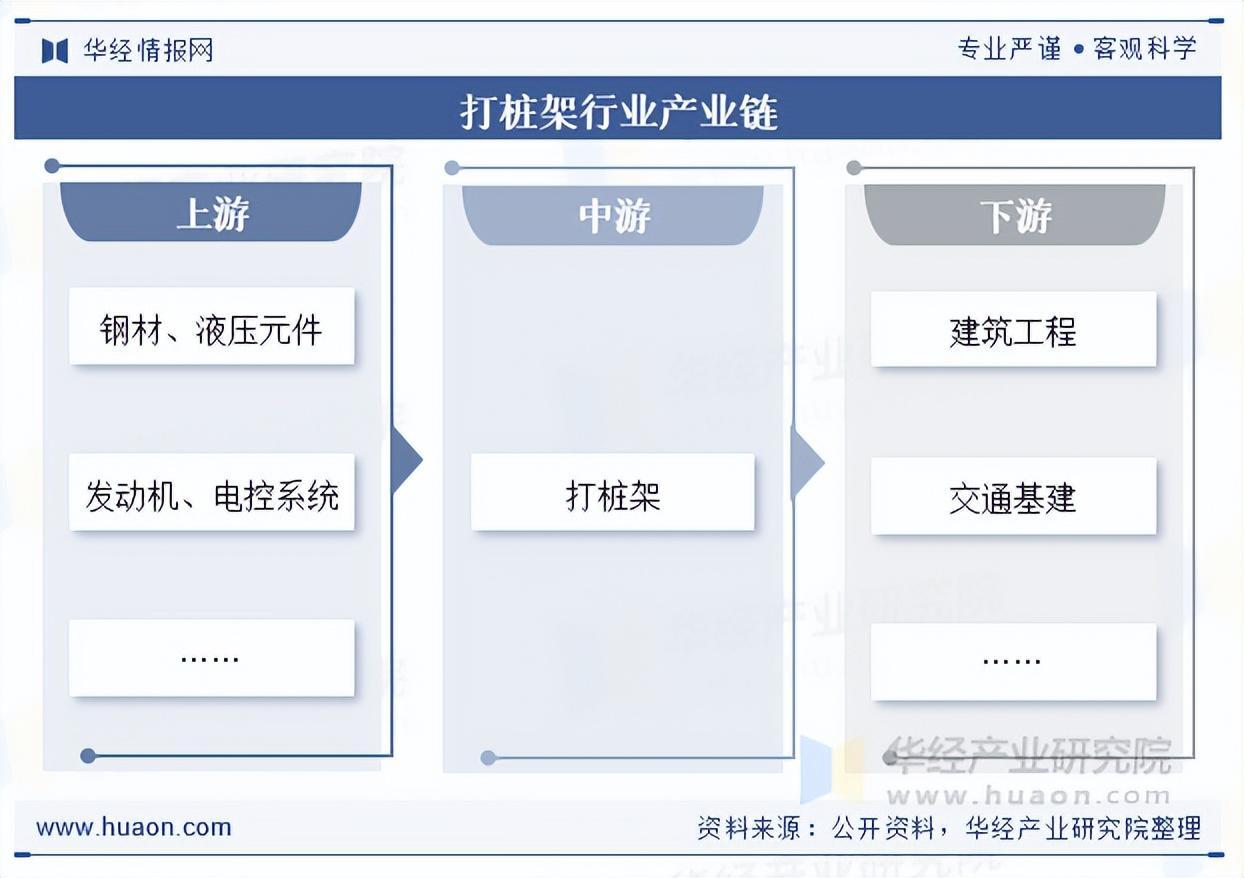 产业链而言,上游为供应环节,原材料与核心部件供应商主要负责供应钢材、液压元件、柴油发动机、履带底盘、电控系统等;中游为打桩架制造与集成环节,涉及研发、加工、组装和测试等流程;下游则是应用环节,包括但不限于建筑工程、交通基建等领域。