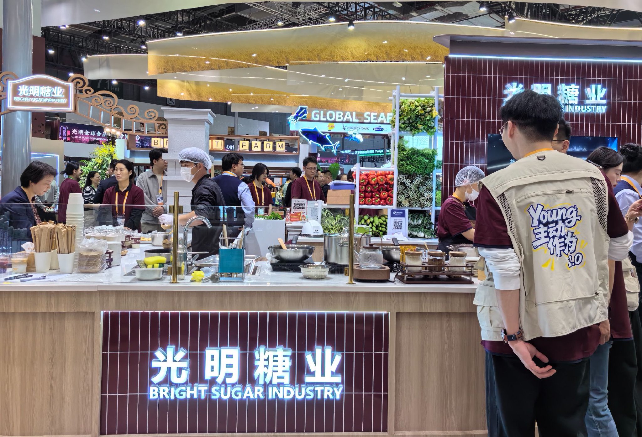 展区中央大街上,以“光明农场”为灵感原点,构筑了一处融汇东西的创意市集。集团旗下海外企业与光明农场企业一起参展,水产集团的海派洋鲜、光明乳业的奶酪、糖酒集团的红酒等与崇明农场、上海农场、五四公司等本土农场的新鲜食材,讲述着“从农场到餐桌”的品质故事,用味蕾环游世界,带来一场跨越山海的对话,让参观者完成一次跨越疆界的感官旅行。