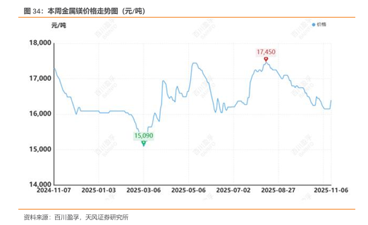 综述:本周(2025.10.31-2025.11.6),镁锭市场价格下行现难。周初各地区市场延续上周五稳价情绪,镁市呈现弱稳僵持态势。工厂库存压力不大,铁厂报价平稳,实际成交价格在16150元/吨左右,再高价位成交显难,再低价位货源偏少,当前镁价涨跌不易。传统淡季下,需求端表现乏力,新增订单有限,采购方积极性不高,只进行刚需补货,市场成交跟进缓慢,各方操作趋于谨慎。周后期,由于煤炭价格大涨,带动镁锭价格回升,镁企报价大幅上调至16400-16500元/吨,下游基于“买涨不买跌”心态,询盘问价较为积极,但市场成交量仍旧不多,仍以谨慎观望为主。综合来看,镁锭市场供应克足,虽总体需求未有显著增加,但在成本支撑下,镁价下行显难,市场观望情绪浓厚,后市还需继续关注下游需求及各工厂开工情况。