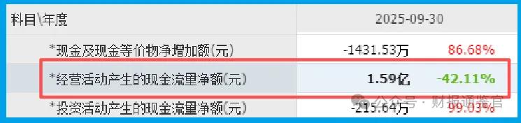 当我翻开三季报,一组数据立即引起了我的警觉:净利润亏损7055万元,但经营活动现金流量净额却是正1.59亿元。利润与现金流的巨大背离,往往意味着公司处在特殊的发展阶段。