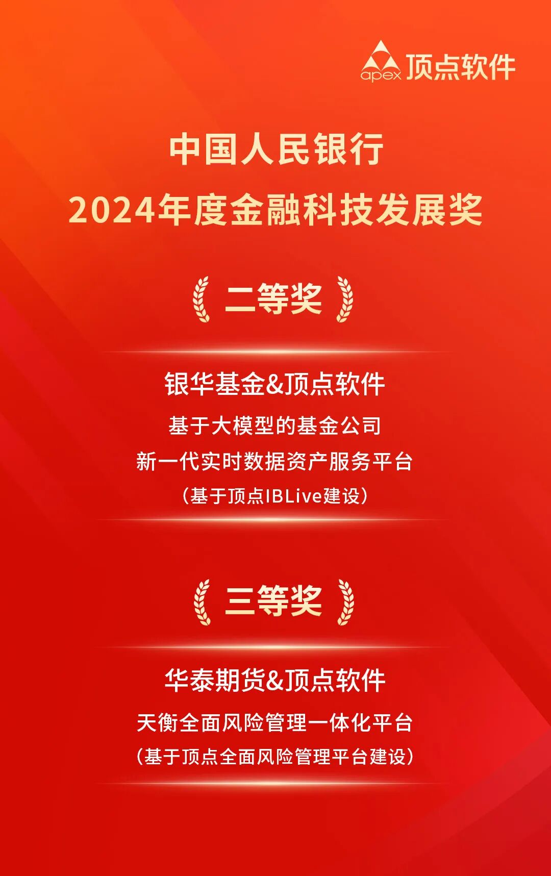 近日,中国人民银行正式公布2024年度金融科技发展奖(以下简称 “金发奖”)获奖名单。顶点携两大合作项目荣膺该奖项,技术创新与行业落地价值获权威认可。