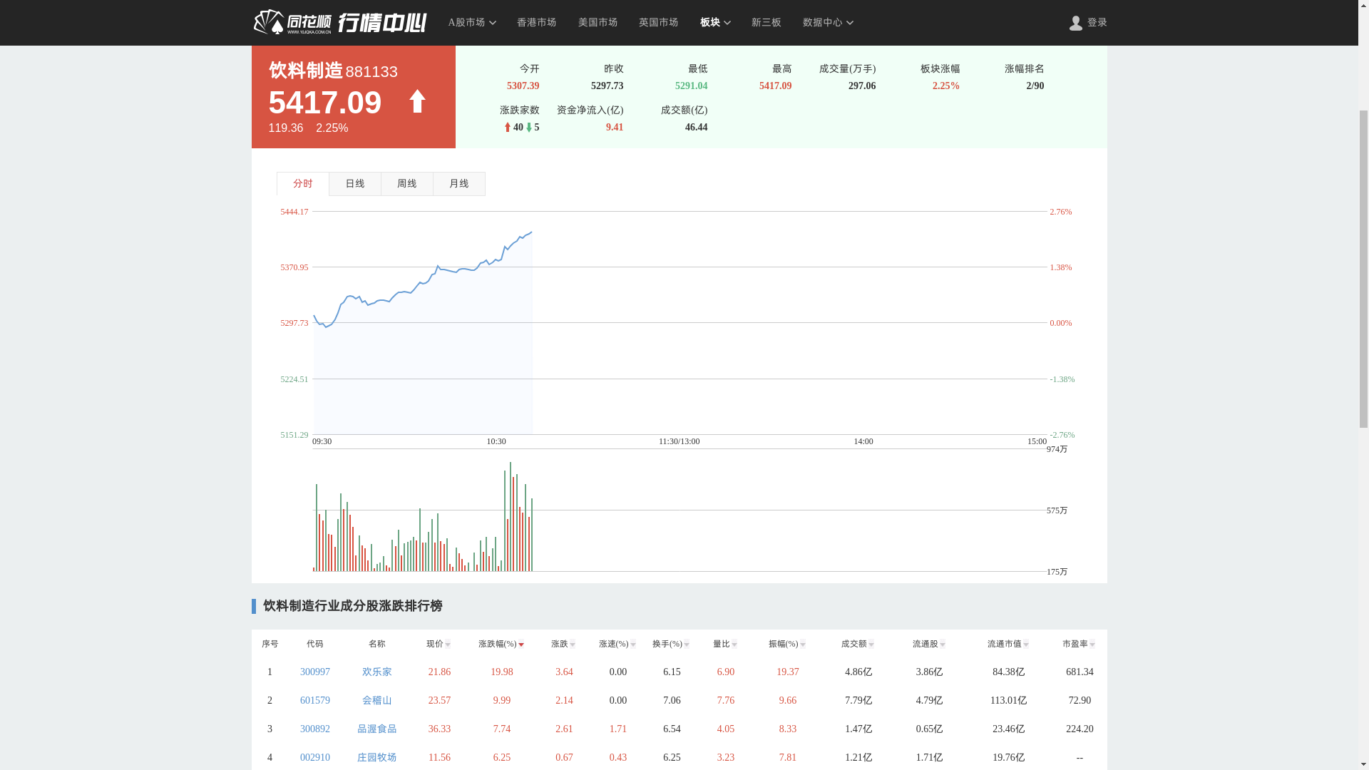 今日食品饮料股持续走强,欢乐家20cm涨停,会稽山涨超8%,庄园牧场、品渥食品、妙可蓝多等个股纷纷跟涨。