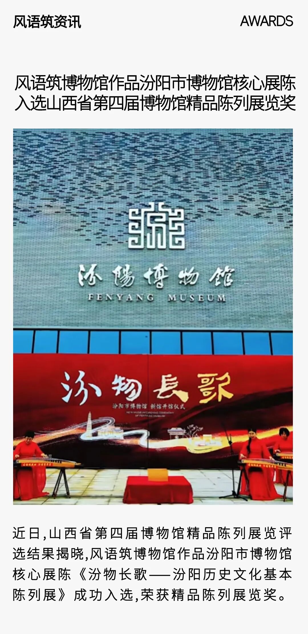 近日,山西省第四届博物馆精品陈列展览评选结果揭晓,风语筑博物馆作品汾阳市博物馆核心展陈《汾物长歌——汾阳历史文化基本陈列展》成功入选,荣获“精品陈列展览奖”。这一殊荣不仅是对汾阳市博物馆展陈水平的高度肯定,也标志着地方历史文化资源在新时代语境下的活化表达再上新台阶。