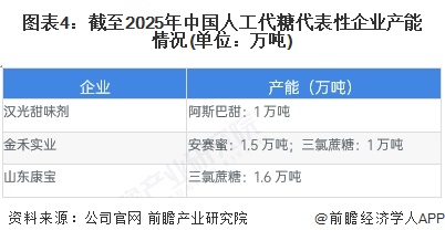 代表性企业主要人工代糖产能在5.1万吨左右