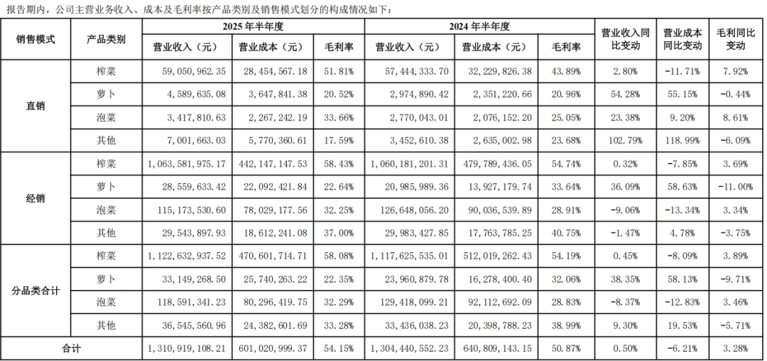 从今年中报来看,公司最核心产品榨菜业绩依旧保持非常稳健,今年半年度榨菜营收11.2亿同比增长0.45%,毛利率58.08较去年同期54.19%提升3.89%。