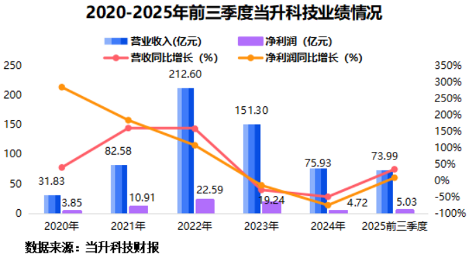 2025年前三季度,当升科技营收达73.99亿元,同比增长33.92%,不论是绝对值还是增速相较2024年均实现明显回升。