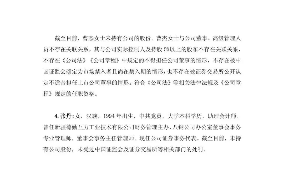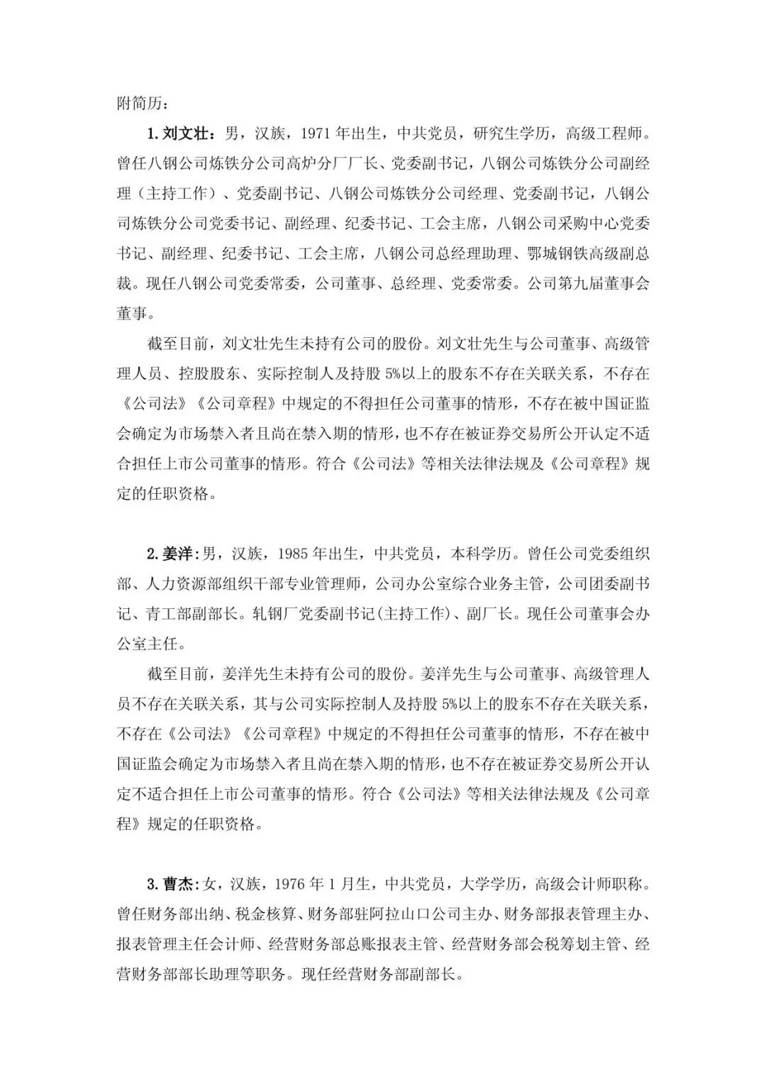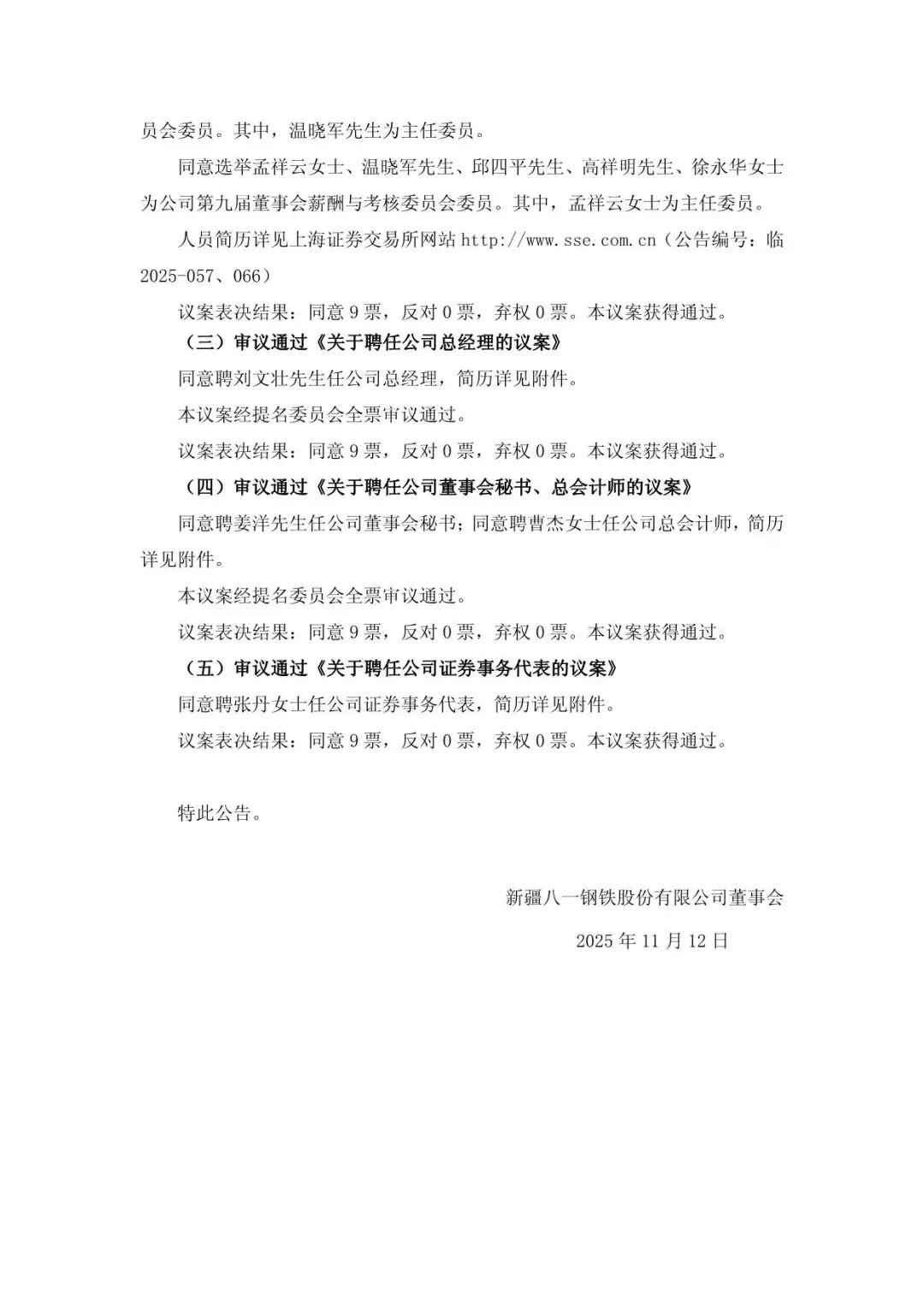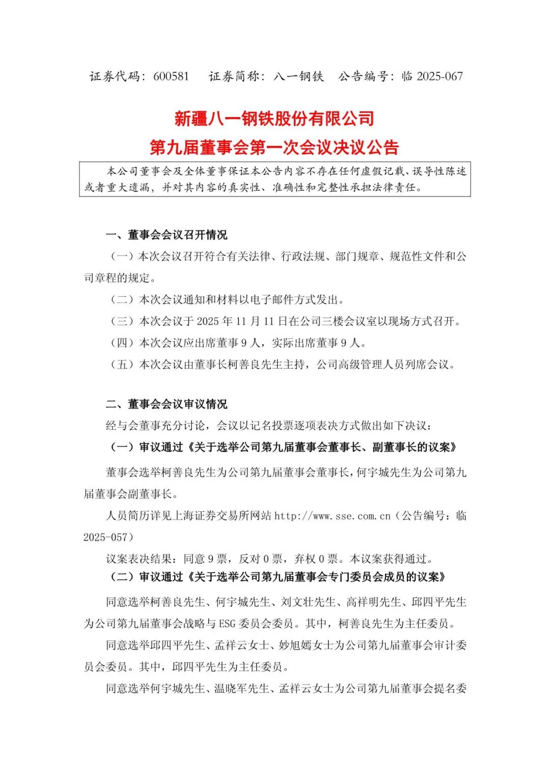 八一钢铁11月11日公告,董事会选举柯善良为公司第九届董事会董事长,何宇城为公司第九届董事会副董事长。