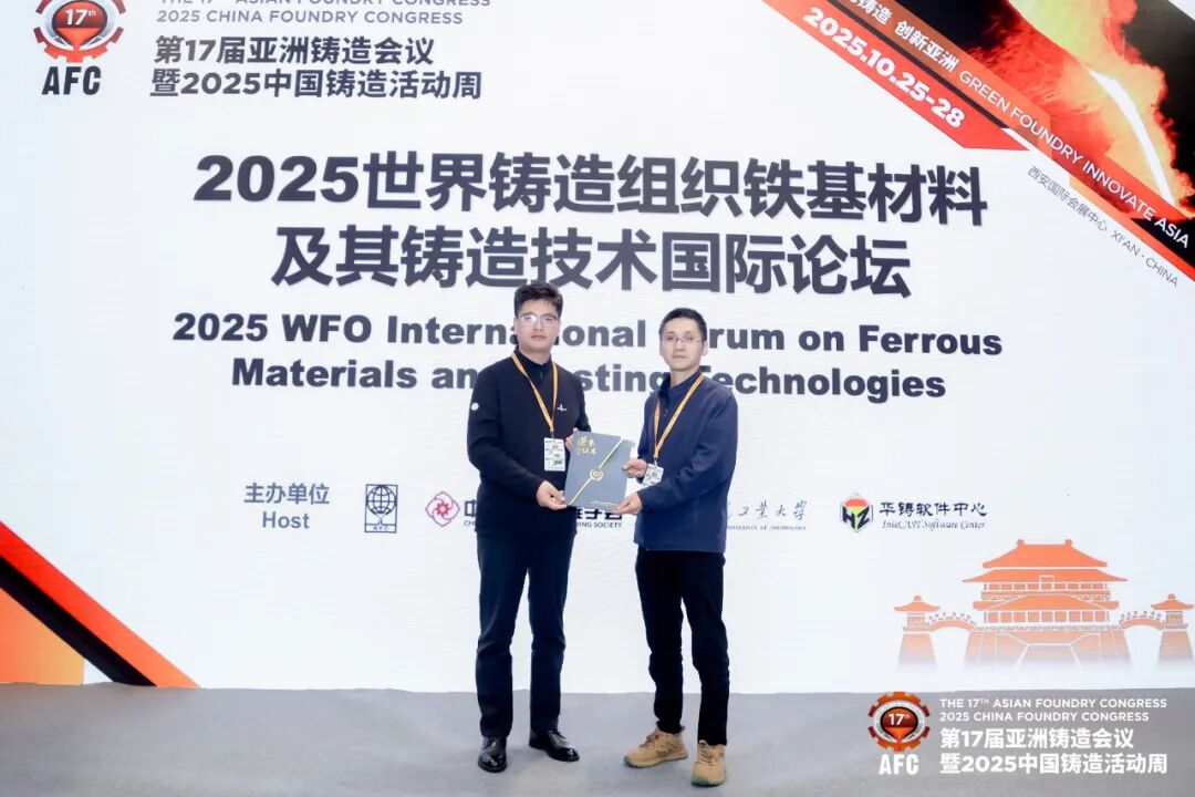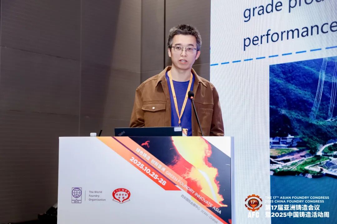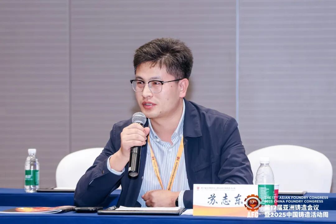 在“2025世界铸造组织铁基材料及其铸造技术国际论坛”上,苏志东受邀担任分论坛主席。凭借其深厚的技术背景和丰富的行业经验,他娴熟地主持了这场高水平的国际学术交流活动,确保会议议程的顺畅高效。通裕重工铸钢事业部总工程师周佼发表了题为《百吨级超低碳马氏体不锈钢铸件的研制》的技术报告,重点介绍了该高端产品在成分设计、冶炼浇注及热处理等关键工艺环节取得的技术成果,分享了通裕重工在大型高端铸件制造方面的经验与实践,展示了通裕重工在大型高端铸件领域的强大技术实力。