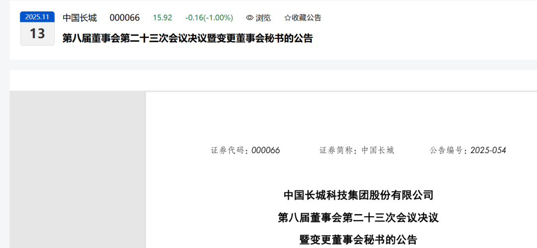 中国长城科技集团股份有限公司(以下简称 “公司”)董事会于近日收到董事会秘书王习发先生的书面辞呈。王习发先生因达到法定退休年龄申请辞去公司董事会秘书职务。退休后,王习发先生不再担任公司及下属公司任何职务。根据有关法律法规及其他规范性文件的规定,王习发先生的辞呈自送达公司董事会之日起生效,其辞职不会影响公司董事会工作的正常进行。截至本公告披露日,王习发先生持有公司股票 100,000 股,其辞职后将严格遵守中国证券监督管理委员会《上市公司董事和高级管理人员所持本公司股份及其变动管理规则》《深圳证券交易所上市公司自律监管指引第 18 号 —— 股东及董事、高级管理人员减持股份(2025 年修订)》等相关法律法规及规范性文件的规定。