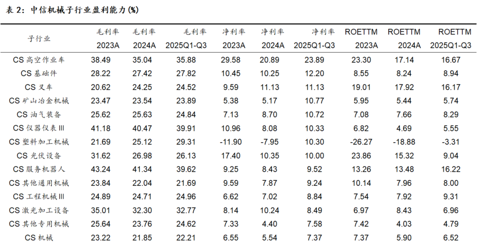 1.2. 中信机械行业2025年三季报盈利能力改善明显