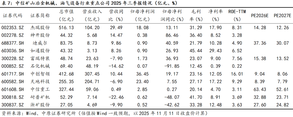 3.5. 矿山冶金、油气设备:油气设备行业复苏盈利修复,矿山冶金机械增速放缓