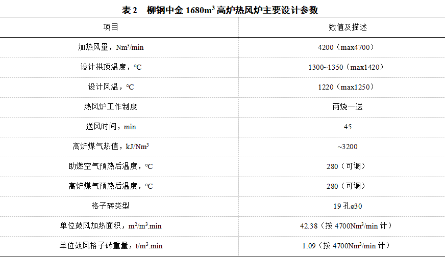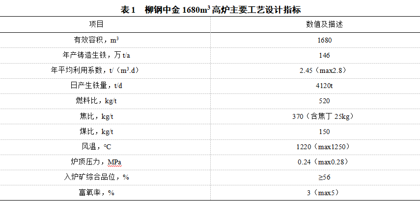 柳钢中金公司1680m3高炉主要设计指标见表1。