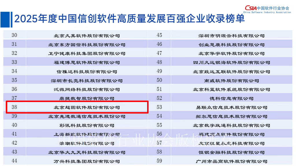 11月13日,中国软件行业协会首次发布《2025中国信创软件高质量发展报告》,同步揭晓“2025年度中国信创软件高质量发展百强企业”榜单。超图软件凭借其在信创领域的综合实力入选该榜单。
