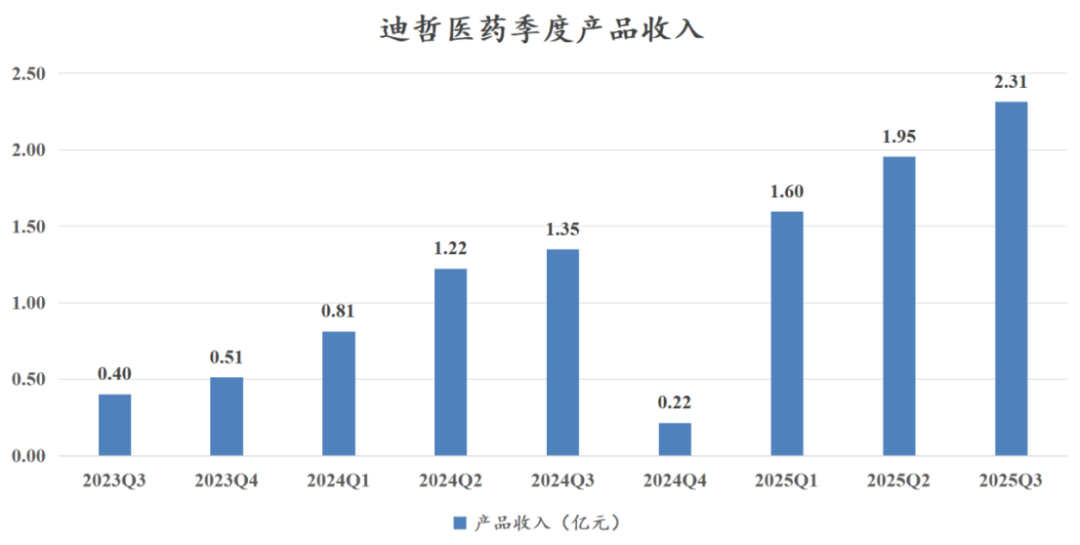 迪哲医药Q3单季度的产品收入2.31亿元同比增长71.46%、环比增长18.37%,这是舒沃替尼和戈利昔替尼进入医保的第一年,除了去年Q4经历医保谈判后的渠道调价导致季度业绩低基数以外,总体放量趋势还是比较不错的,25年全年完成8亿的指引已经是比较轻松,只是看8-9亿之间可以达到什么水平。