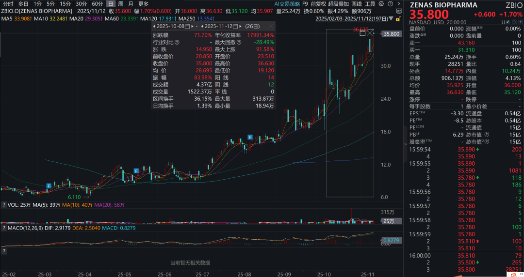 另外,自与诺诚健华的BD落地后,Zenas的股价已经涨了70%+,股价来到35美元,诺诚健华的这笔BD中包含的700万股Zenas股权的价值已经超过2.5亿美元。