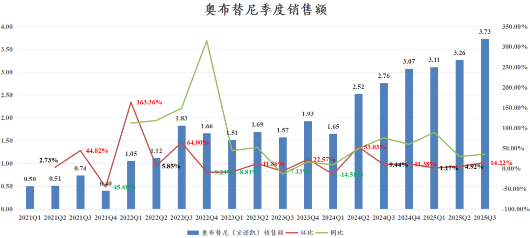 Q3单季度公司收入3.84亿元同比增长38.09%,药品销售收入3.83亿元同比增长38.21%,其中奥布替尼销售3.73亿元同比增长35.04%、环比增长14.22%,季度环比增长超预期,CD19单抗预计Q3销售1000万左右,环比增长约1.5倍。