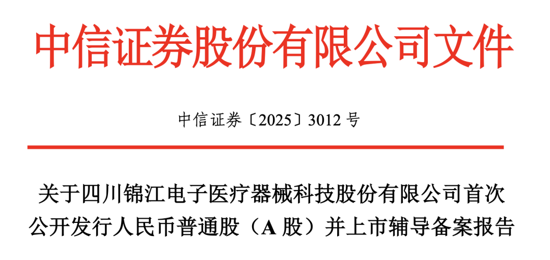 近日,国产电生理企业锦江电子于四川证监局办理辅导备案登记,拟首次公开发行人民币普通股(A股)并上市,辅导券商为中信证券。