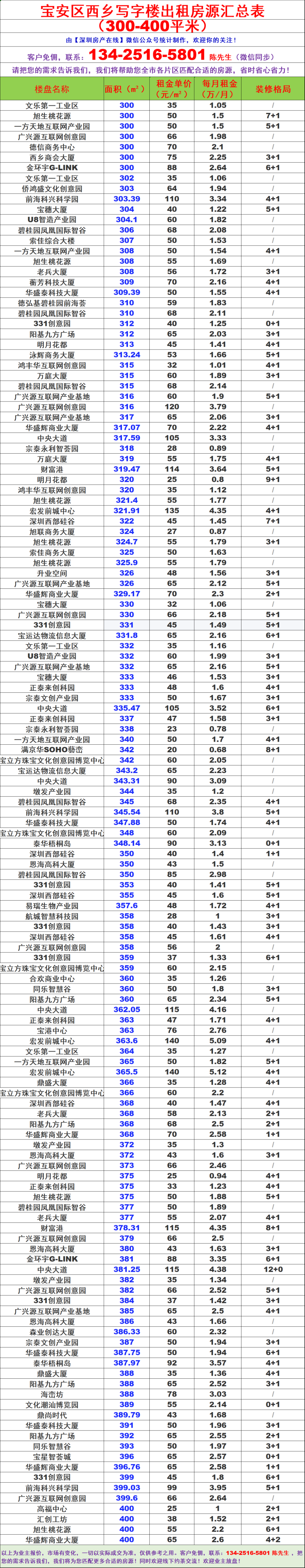 宝安区西乡300-400平米写字楼出租招租赁信息