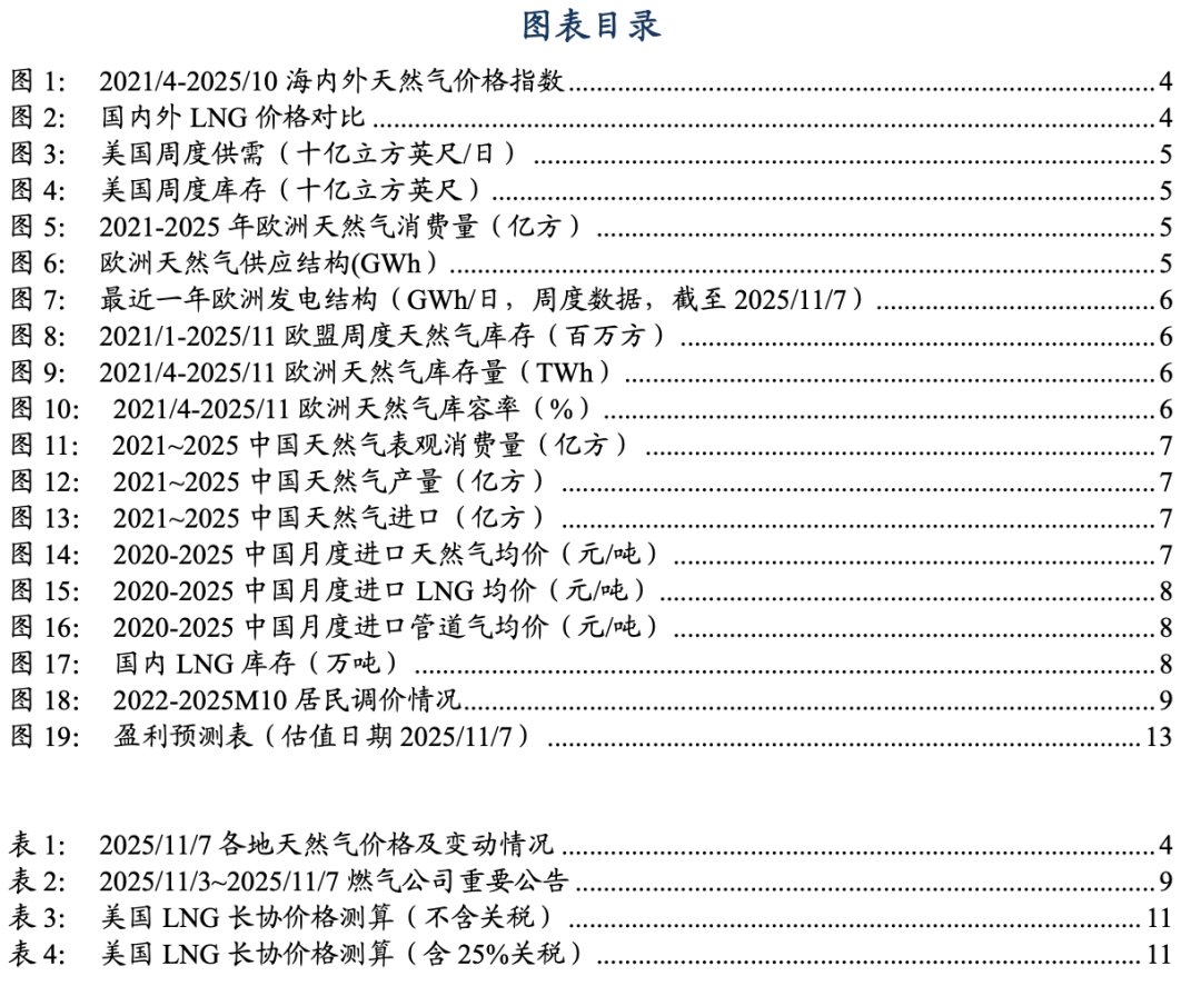 3)美气进口不确定性提升,能源自主可控重要性突显。建议关注具备气源生产能力的【新天然气】【蓝焰控股】。(估值日期2025/11/7)