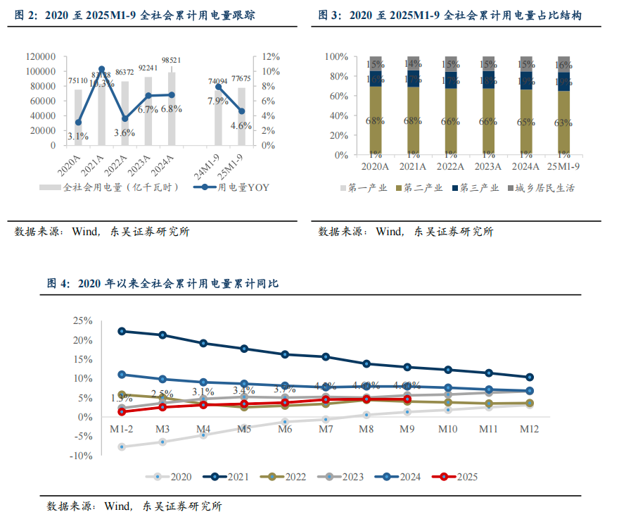 2.1.用电:2025M1-9全社会用电量同比+4.6%,增速稳健